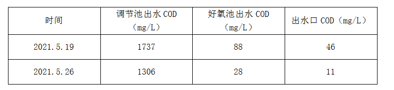 3、實施過程:在調節池和(hé)好氧池分(fēn)别投加COD去除菌劑(曼巴1号、曼巴2号),24小(xiǎo)時不間斷投放(fàng)。以投菌前COD爲對照(zhào),檢測投菌後COD變化情況。